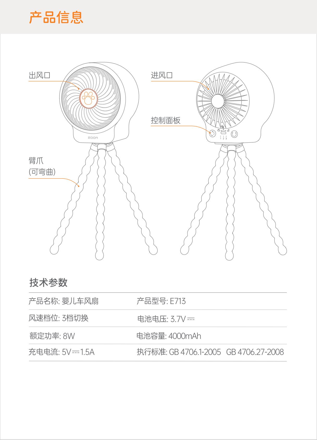 E713婴儿车风扇